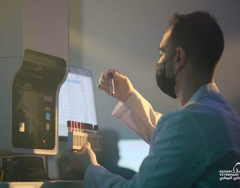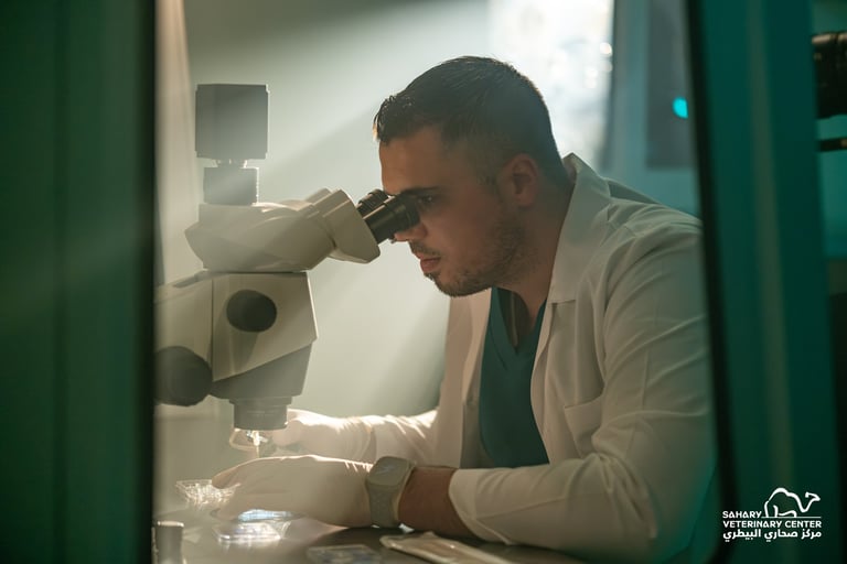 فحوصات مخبرية دقيقة : يقدّم المختبر البيطري خدمات تحاليل متقدمة للإبل والخيل، باستخدام أحدث التقنيات المخبرية وتحت إشراف خبراء بيطريين متخصصين، لضمان دقة التشخيص وتعزيز الصحة والإنتاجية.